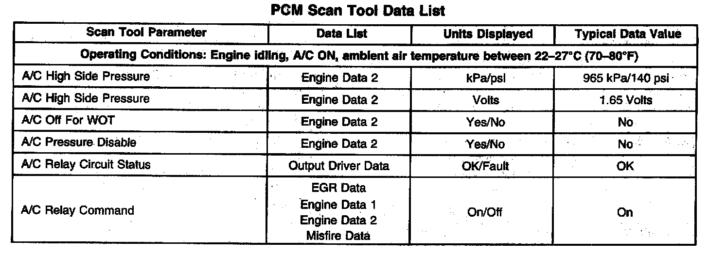 Scan Tool Data List - Powertrain Control Module (PCM)