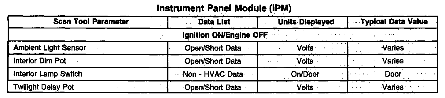 Scan Tool Data List - Instrument Panel Module (IPM)