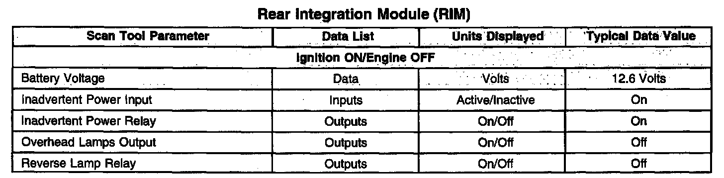 Scan Tool Data List - Rear Integration Module (RIM)