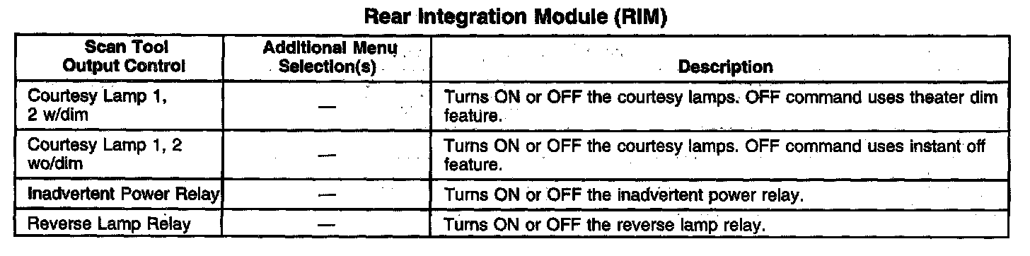 Scan Tool Output Controls - Rear Integration Module (RIM)
