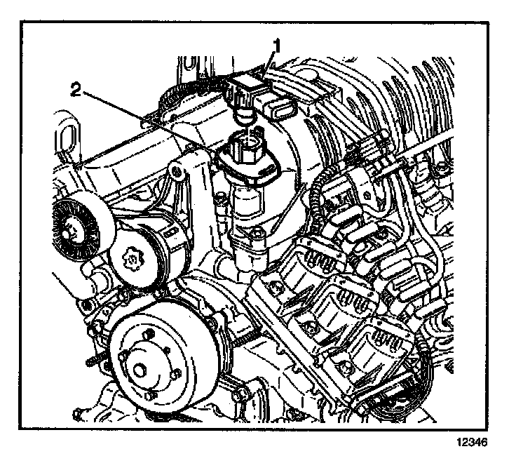 2. Position and install the MAP sensor (1) to the PCV valve cover (2). Ensure that the locking tabs engage to hold the MAP sensor to the PCV valve cover.
