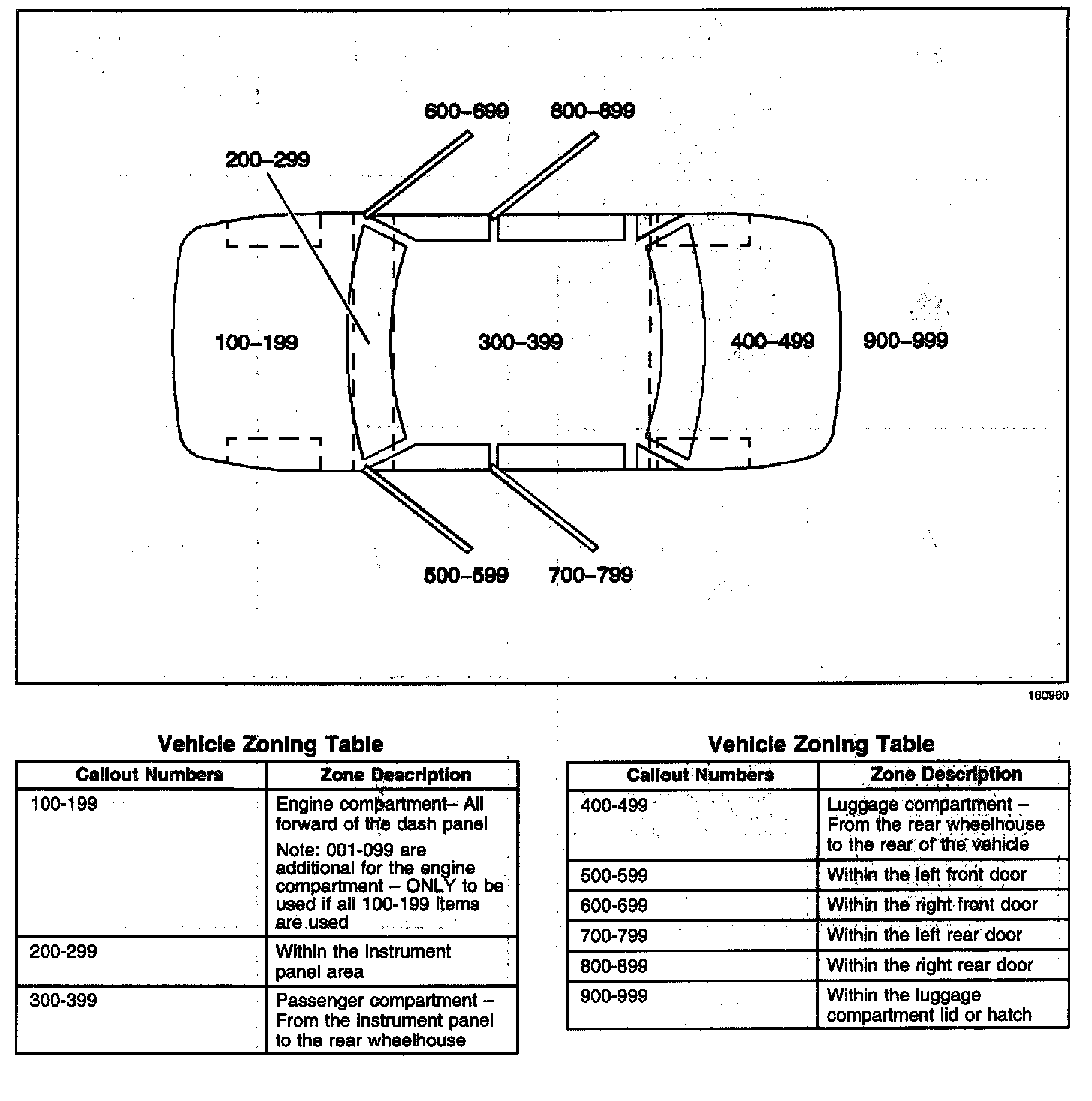 All grounds, in-line connectors, pass-through grommets, and splices have identifying numbers that correspond to where they are located in the vehicle.
