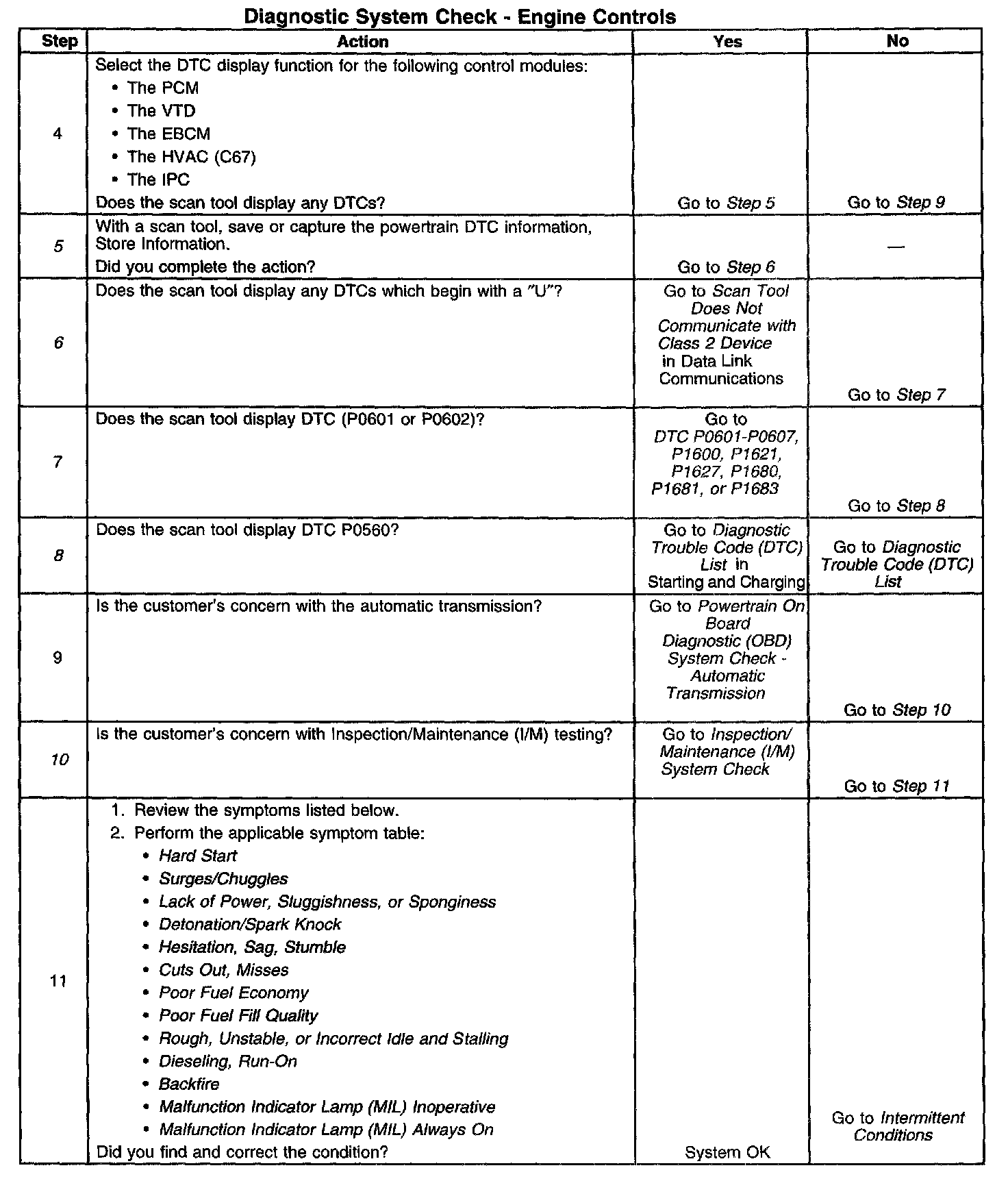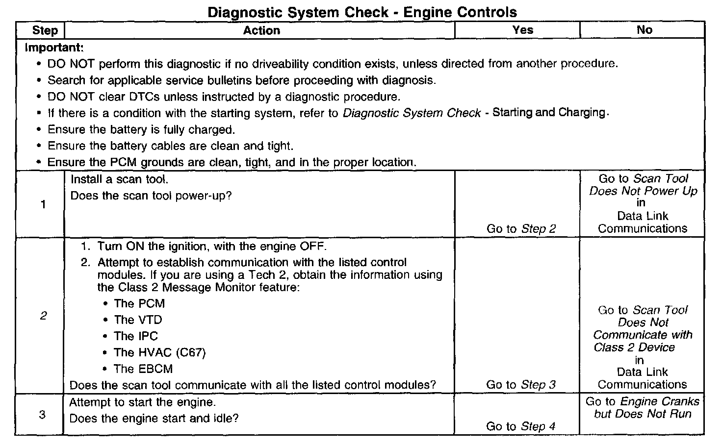 DESCRIPTIONThe Diagnostic System Check-Computers and Controls Systems is an organized approach to identifying a condition that is created by a malfunction in the powertrain control system. The Diagnostic System Check must be the starting point for any driveability concern. The Diagnostic System Check directs the service technician to the next logical step in order to diagnose the concern. Understanding and correctly using the diagnostic table reduces diagnostic time, and prevents the replacement of good parts.