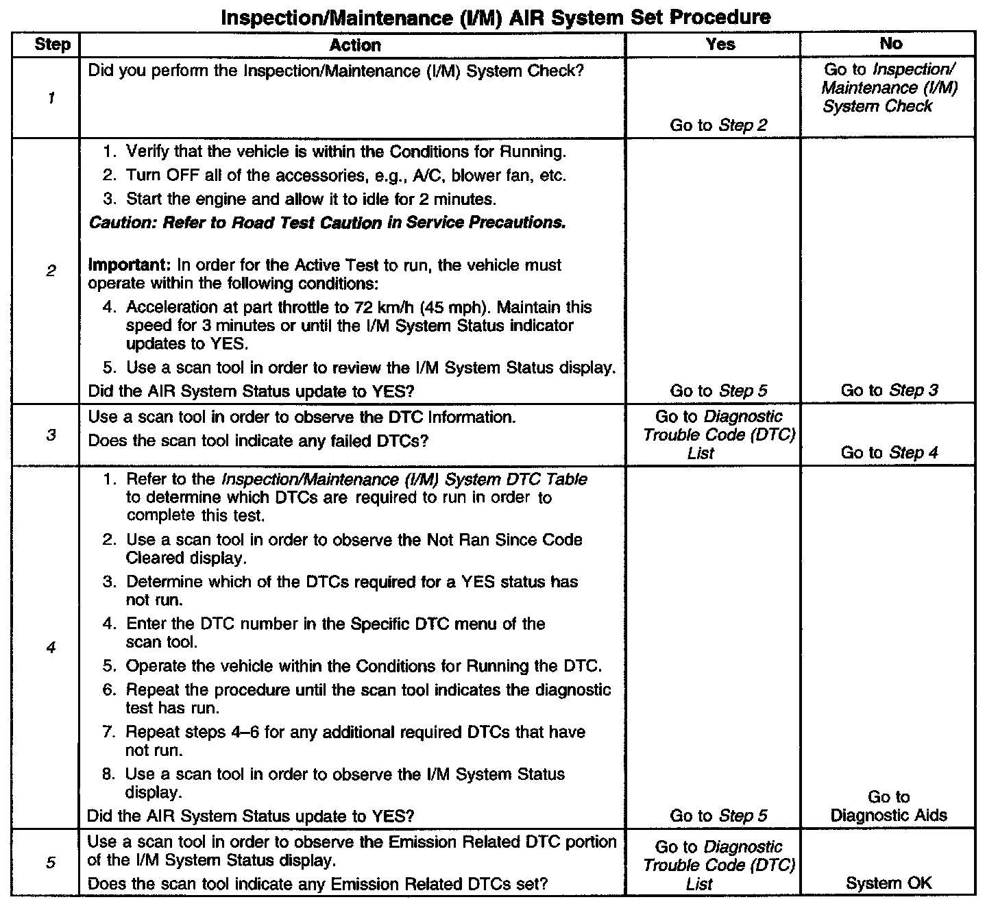 1. Perform the I/M System Check before performing this test. Failure to do so may result in difficulty updating the status to YES. Inspection/Maintenance (I/M) System Check