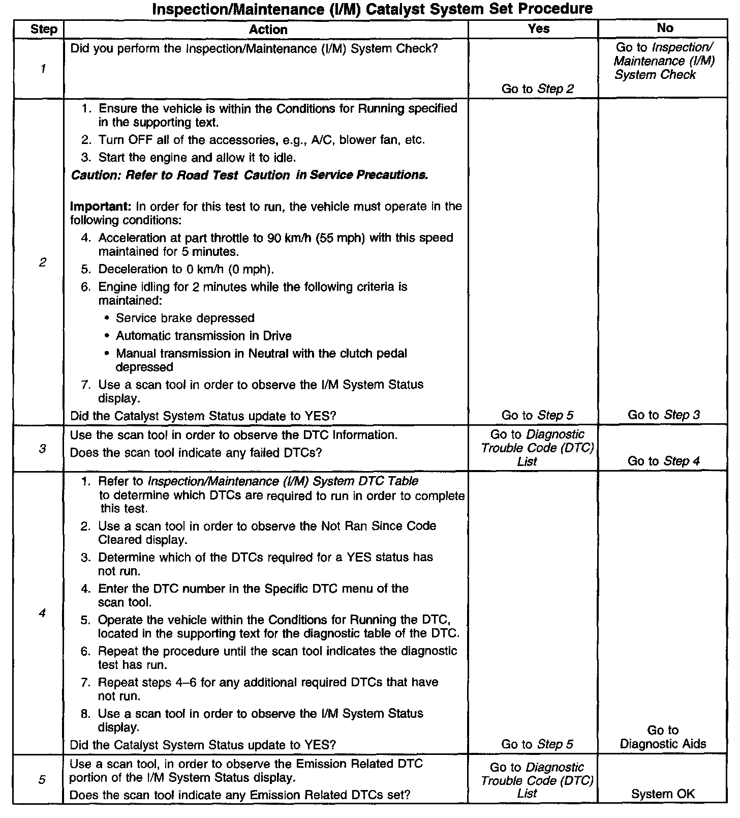 1. Make sure you perform the I/M System Check before performing this test. Failure to do so may result in difficulty updating the status to YES. Inspection/Maintenance (I/M) System Check