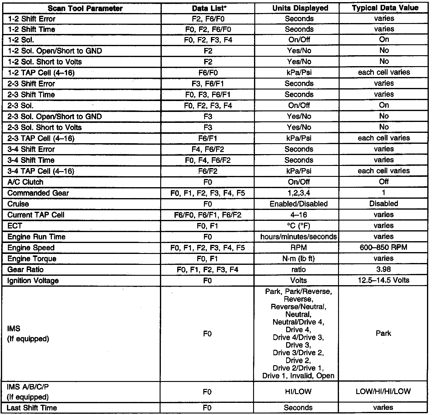 Transmission Scan Tool Data ListUse the scan tool data list under the following conditions:
