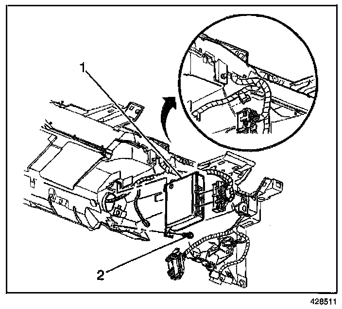 2. Remove the fastener (2) from the instrument panel module (IPM).