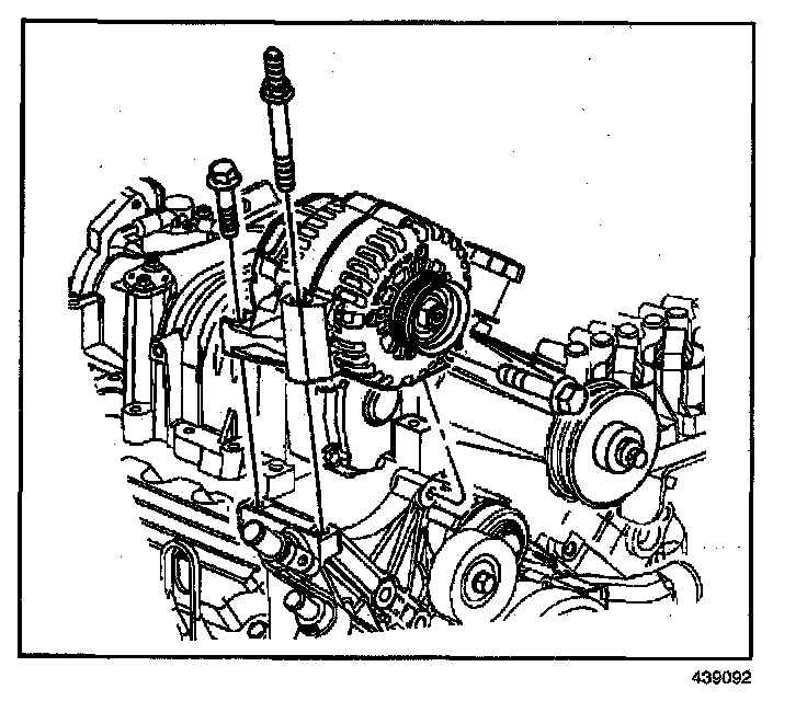 ^ Tighten the generator brace bolt to 25 N.m (18 lb ft).