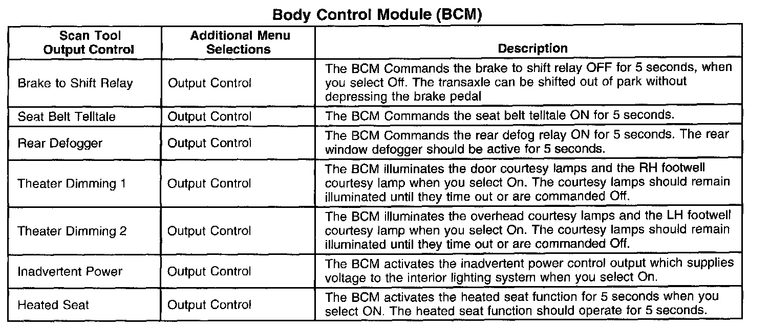 Scan Tool Output Controls - Body Control Module (BCM)
