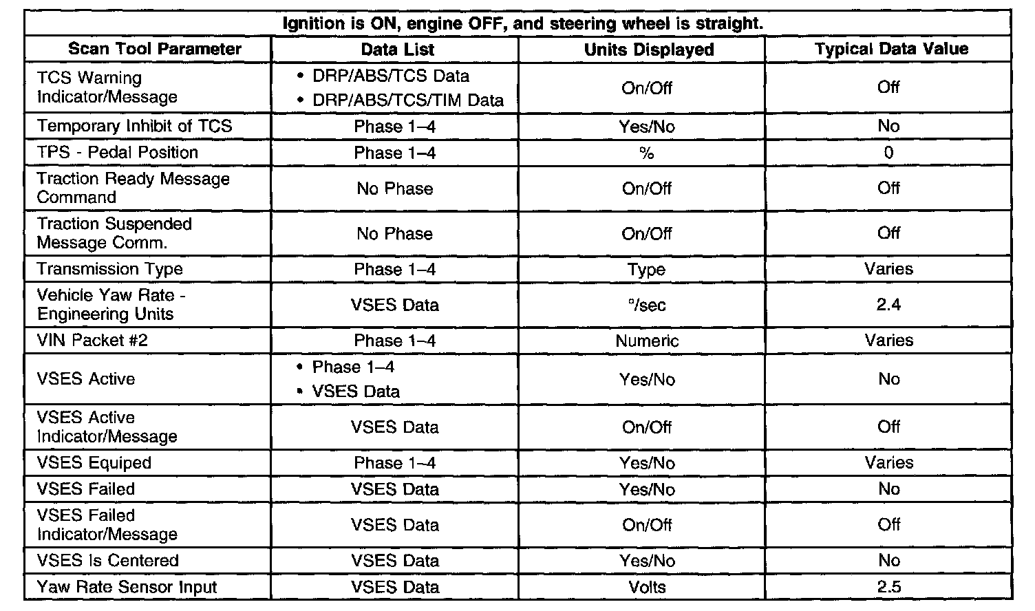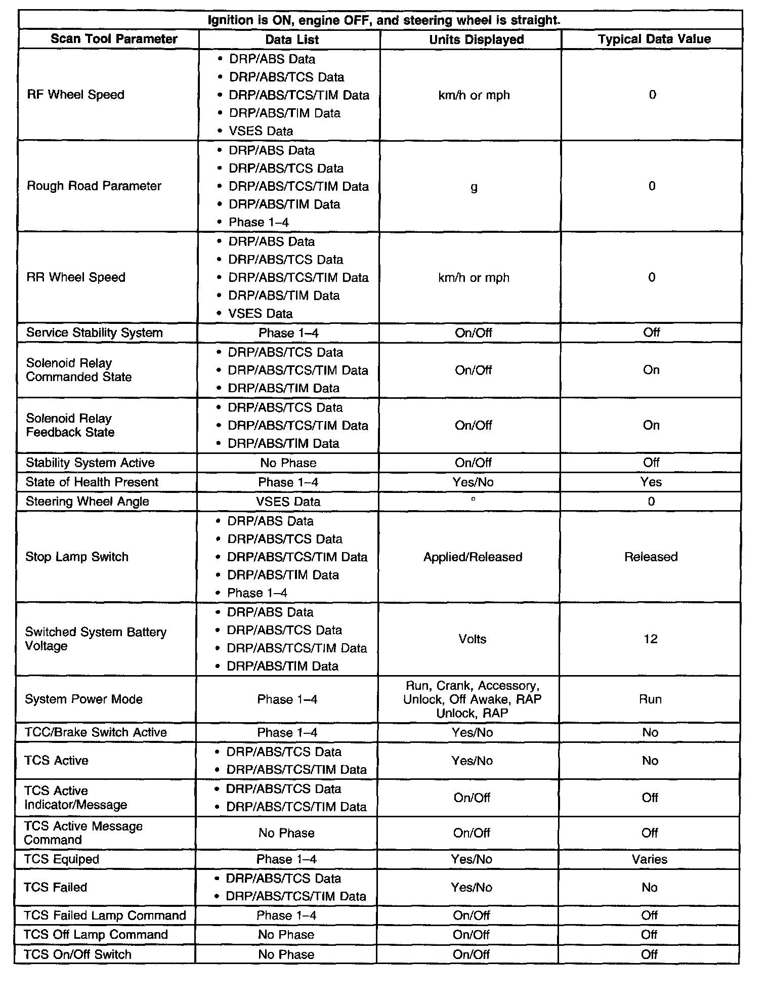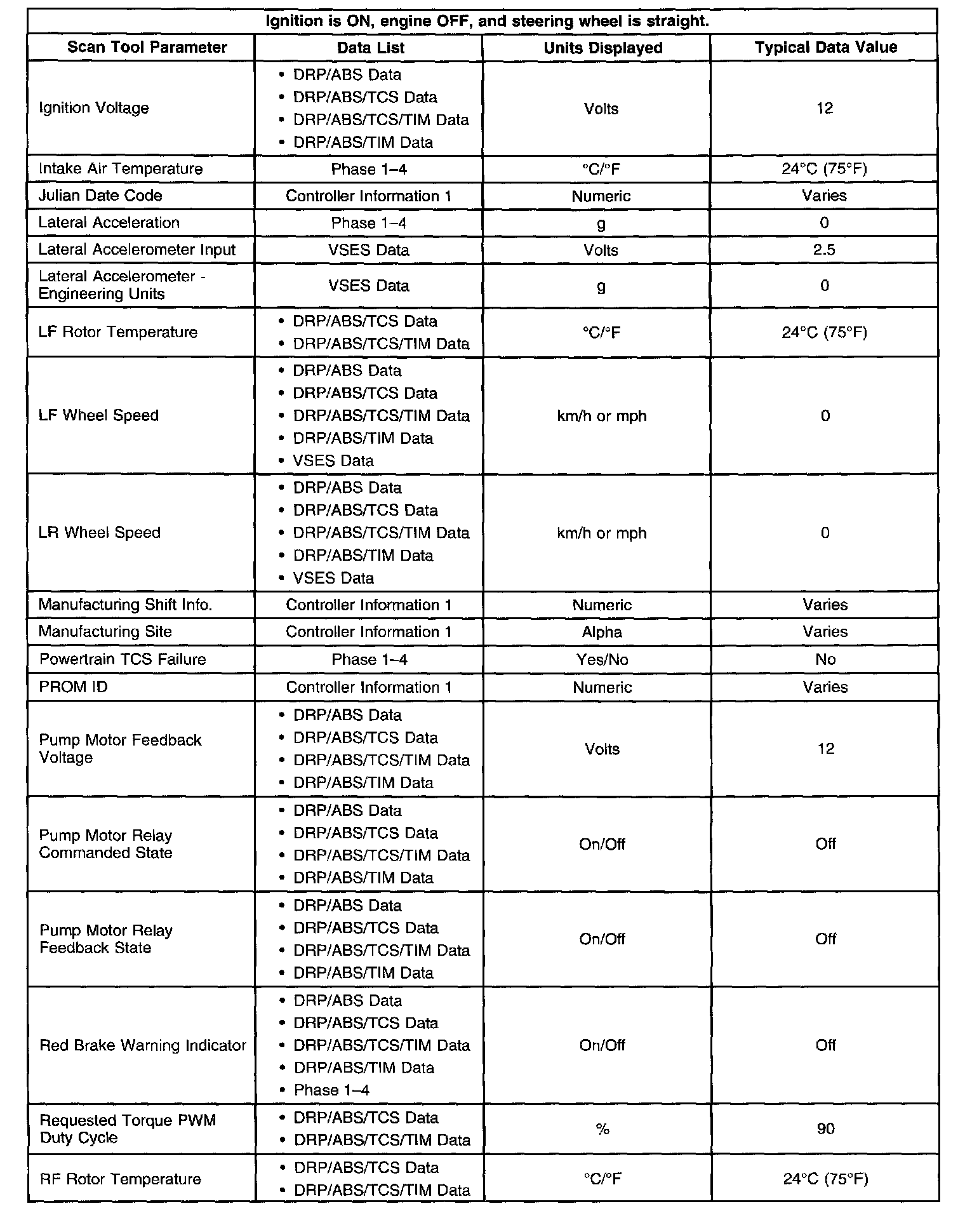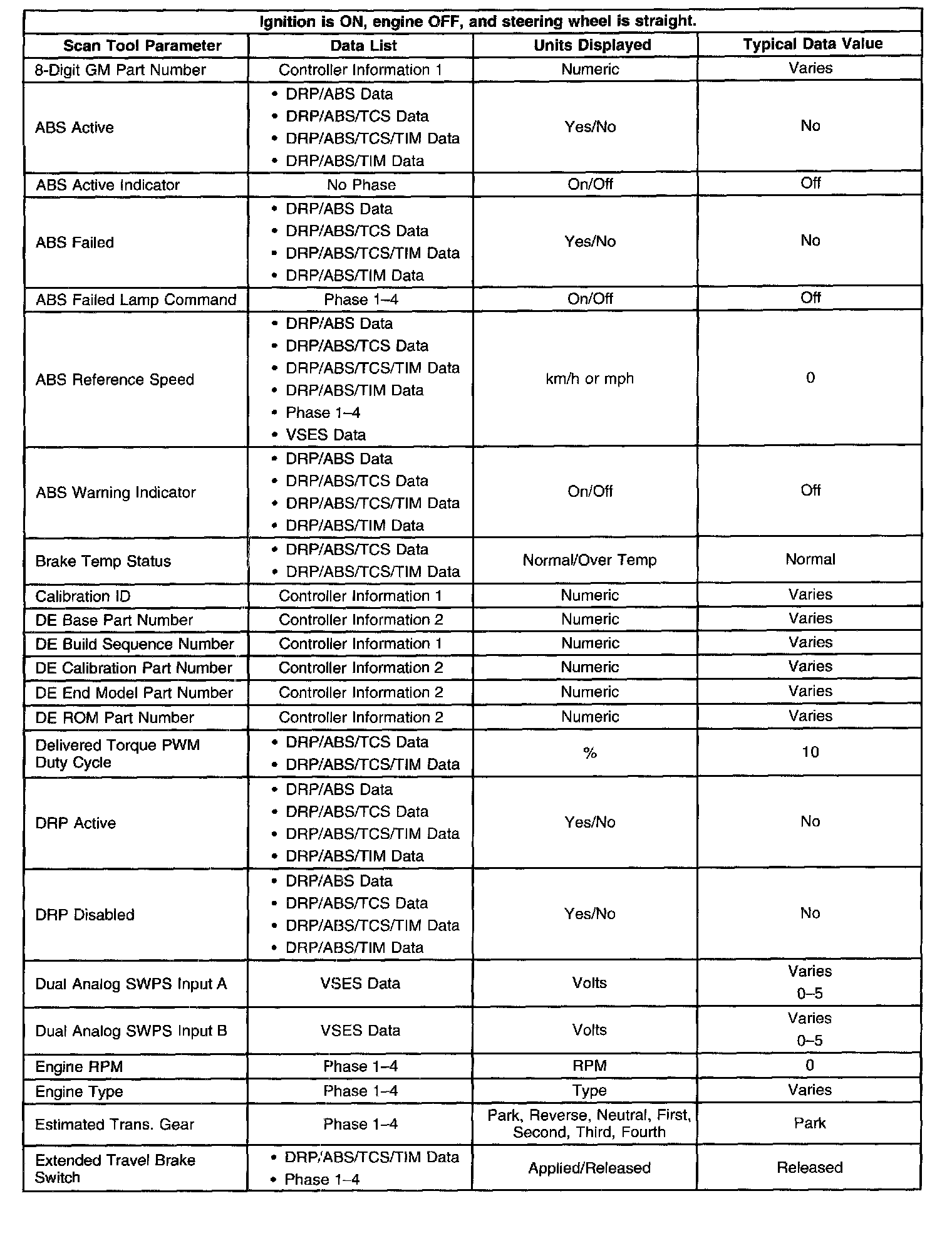 Scan Tool Data List