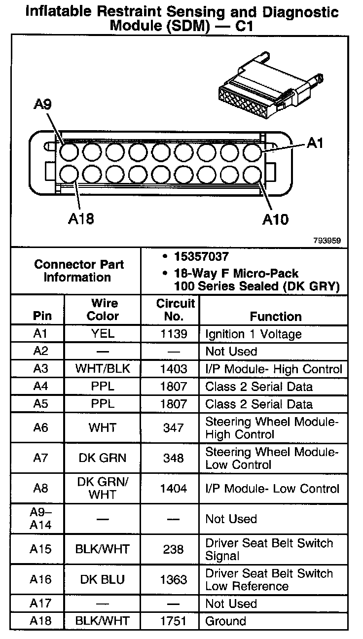 Inflatable Restraint Sensing And Diagnostic Module (SDM) - C1:
