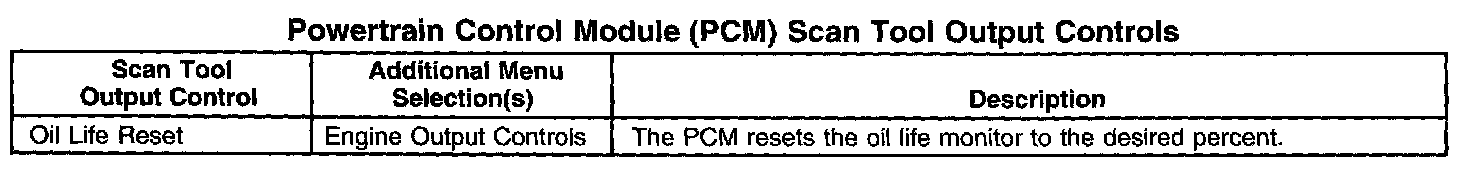 Powertrain Control Module (PCM) Scan Tool Output Controls: