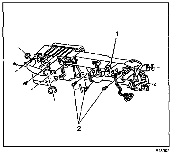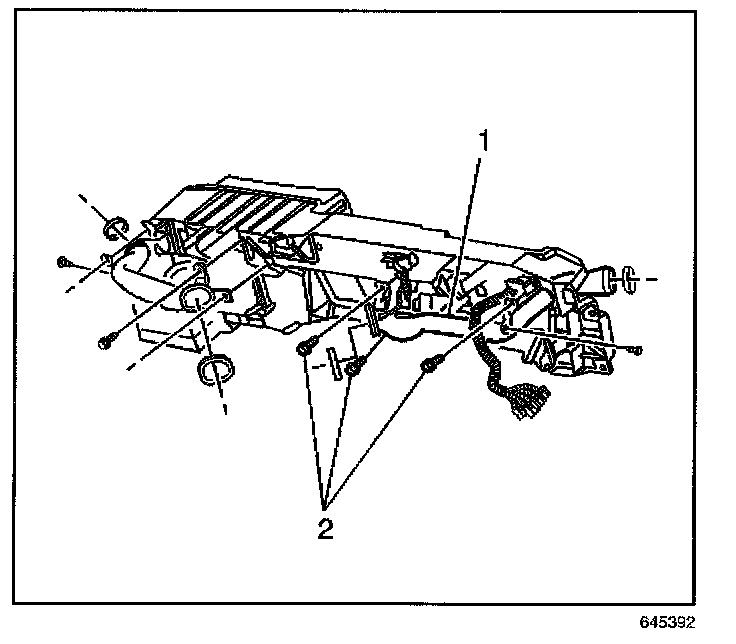2. Remove the fasteners (2) securing the heater A/C duct.