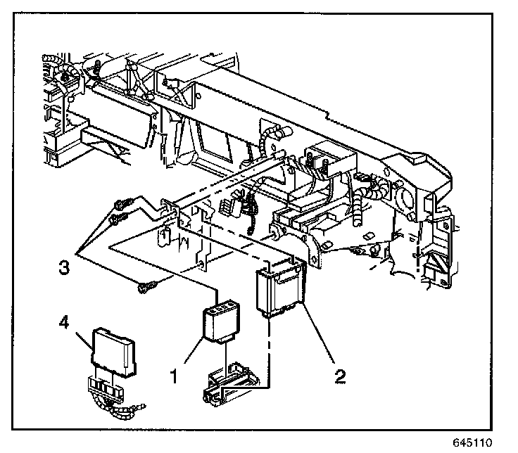 2. Install the lamp control module bracket (2) to the instrument panel.