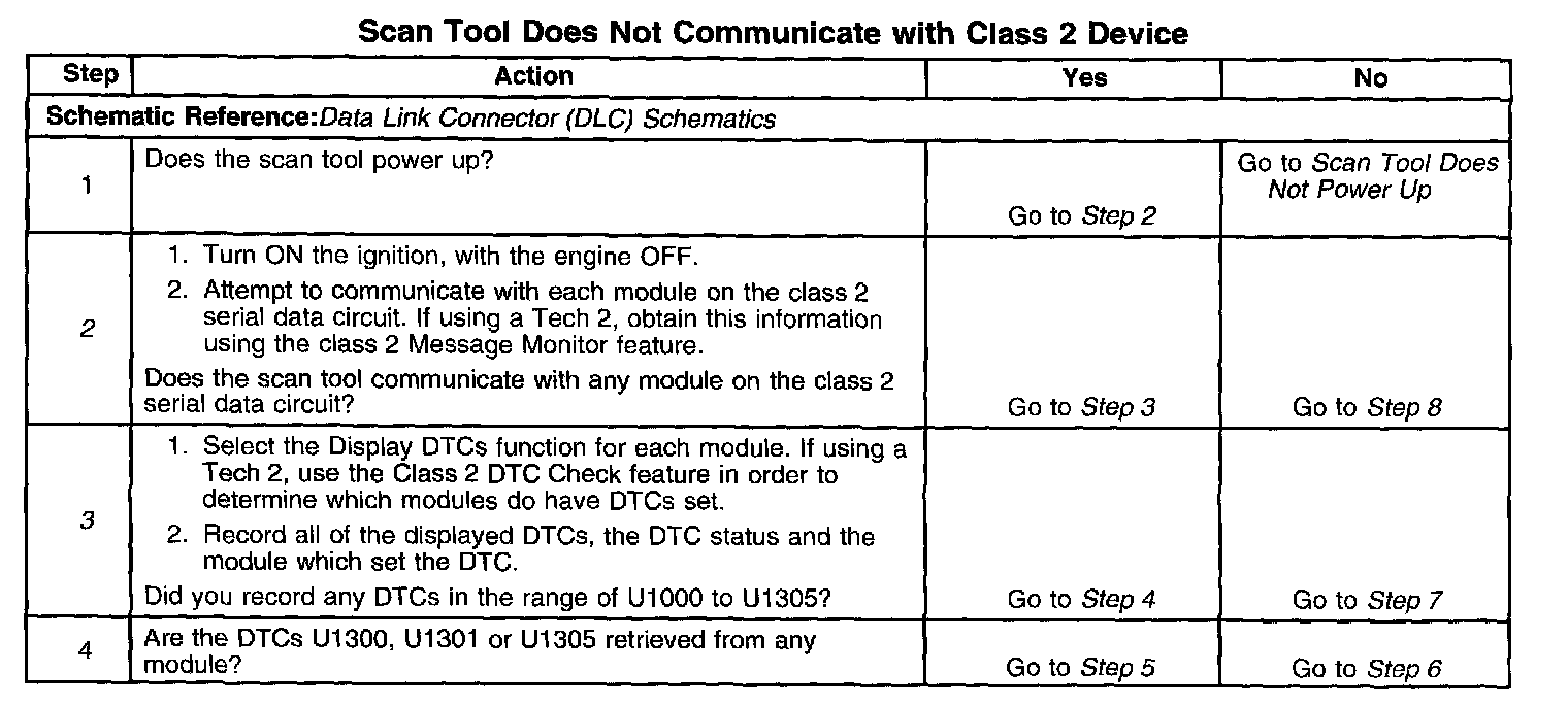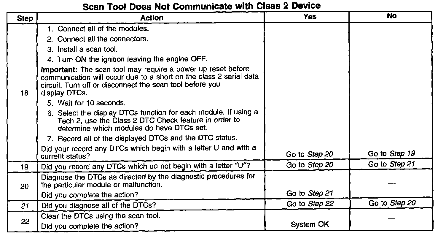 12. An open between the DLC and the class 2 serial data circuit will prevent the scan tool from communicating with any module. This condition will not set a DTC.