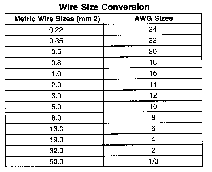 ^ The wire must be of equal or greater size than the original (except fusible link).
