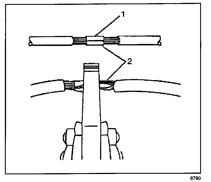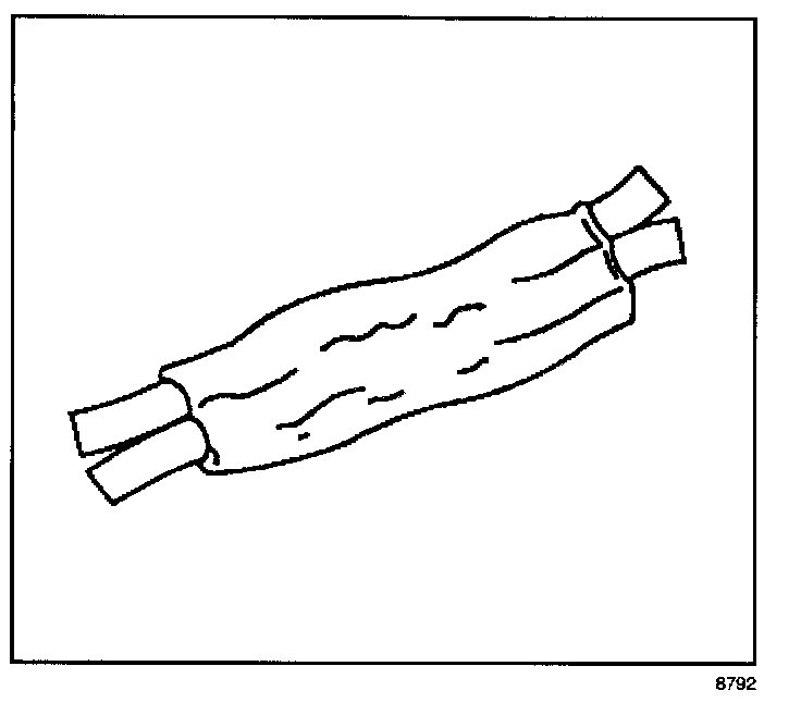 ^ Ensure that each splice is at least 40 mm (1.5 in) away from other splices, harness branches and connectors. This helps prevent moisture from bridging adjacent splices and causing damage.