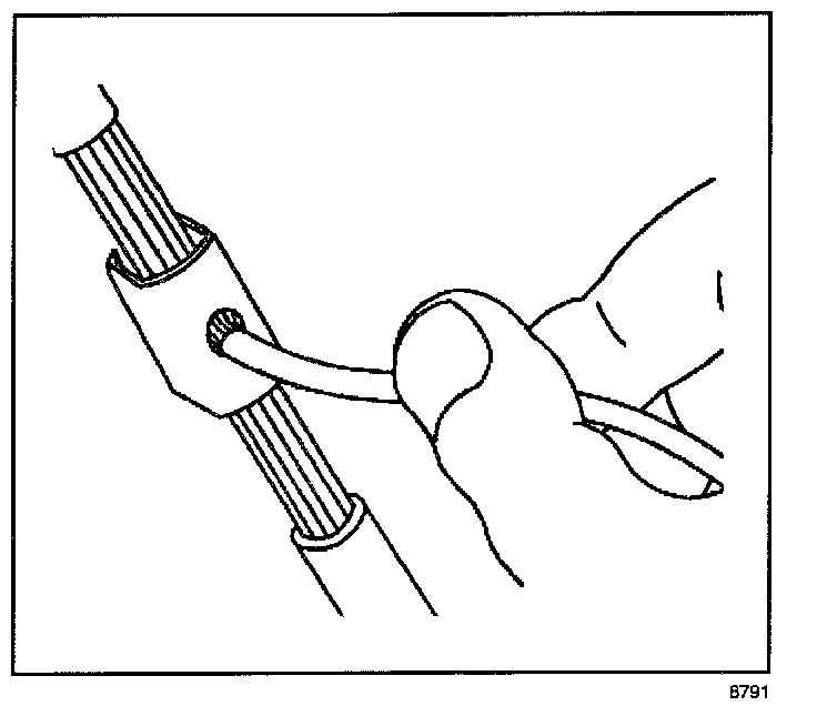 ^ Strip approximately 7.5 mm (5/16 in) of insulation from each wire to be spliced.