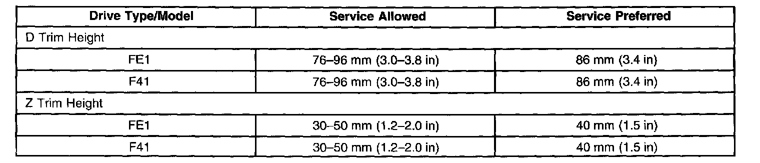 Ride/Trim Height Specifications