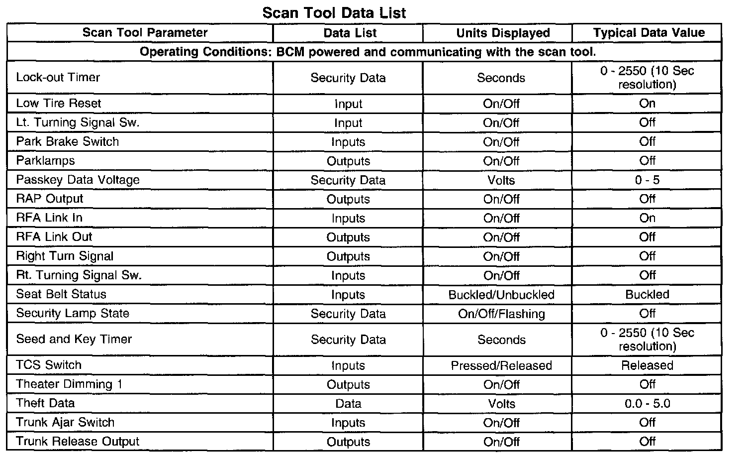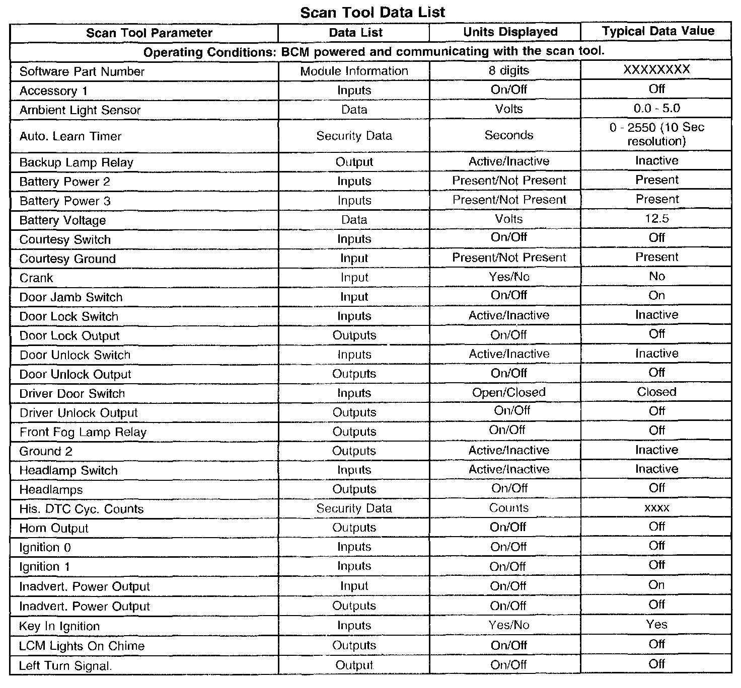 Scan Tool Data List