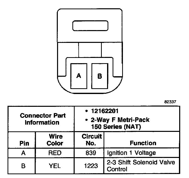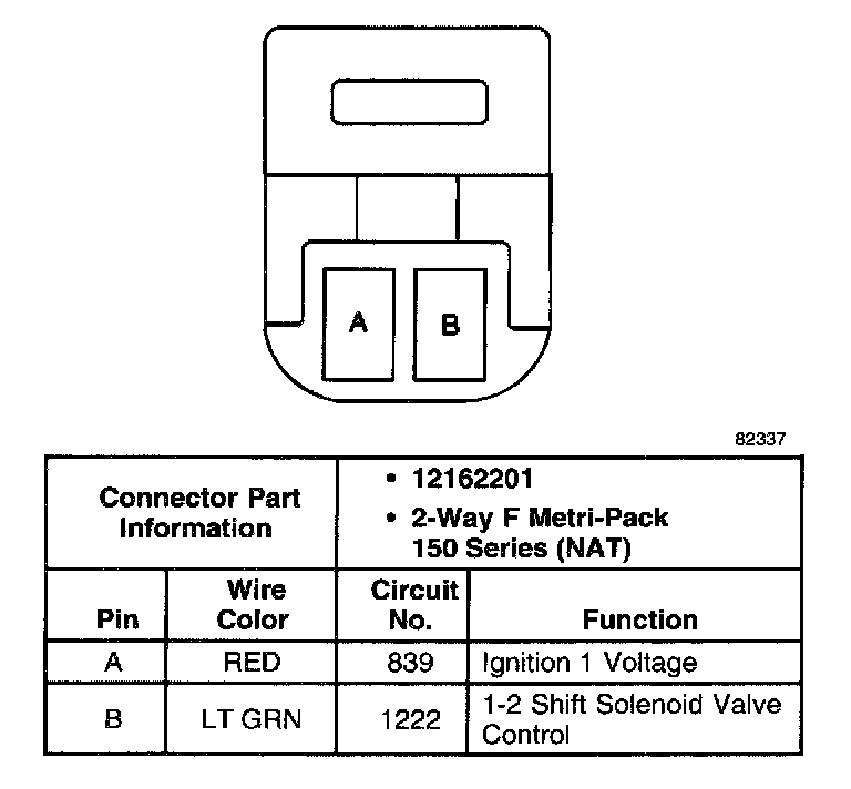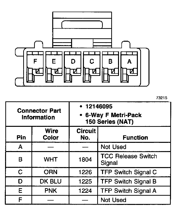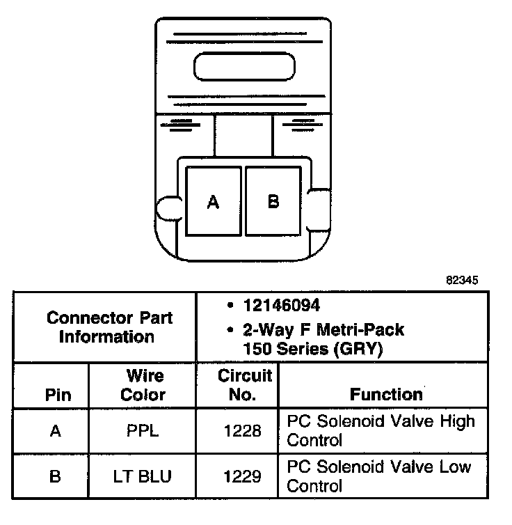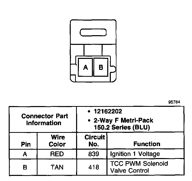 Torque Converter Clutch Pulse Width Modulated Solenoid Valve Connector, Wiring Harness Side