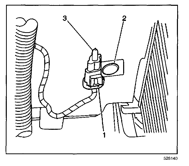 1. Disconnect the electrical connector (1) from the ambient air temperature sensor (3) that is located on the right front radiator air baffle.