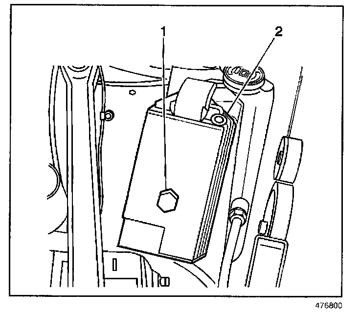 2. Remove the underhood relay center cover (2).