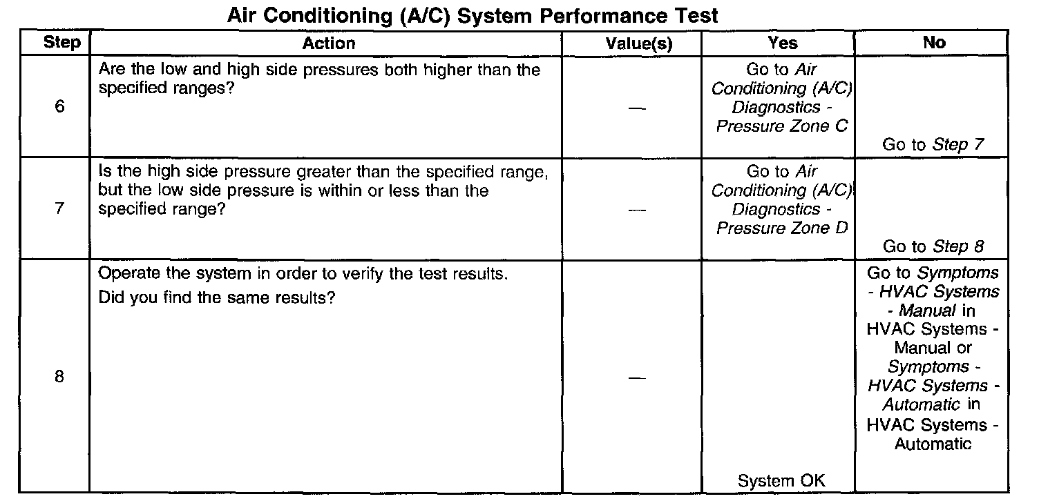 1. This step determines if the A/C system has at least the minimum refrigerant charge required to operate the system without damage.