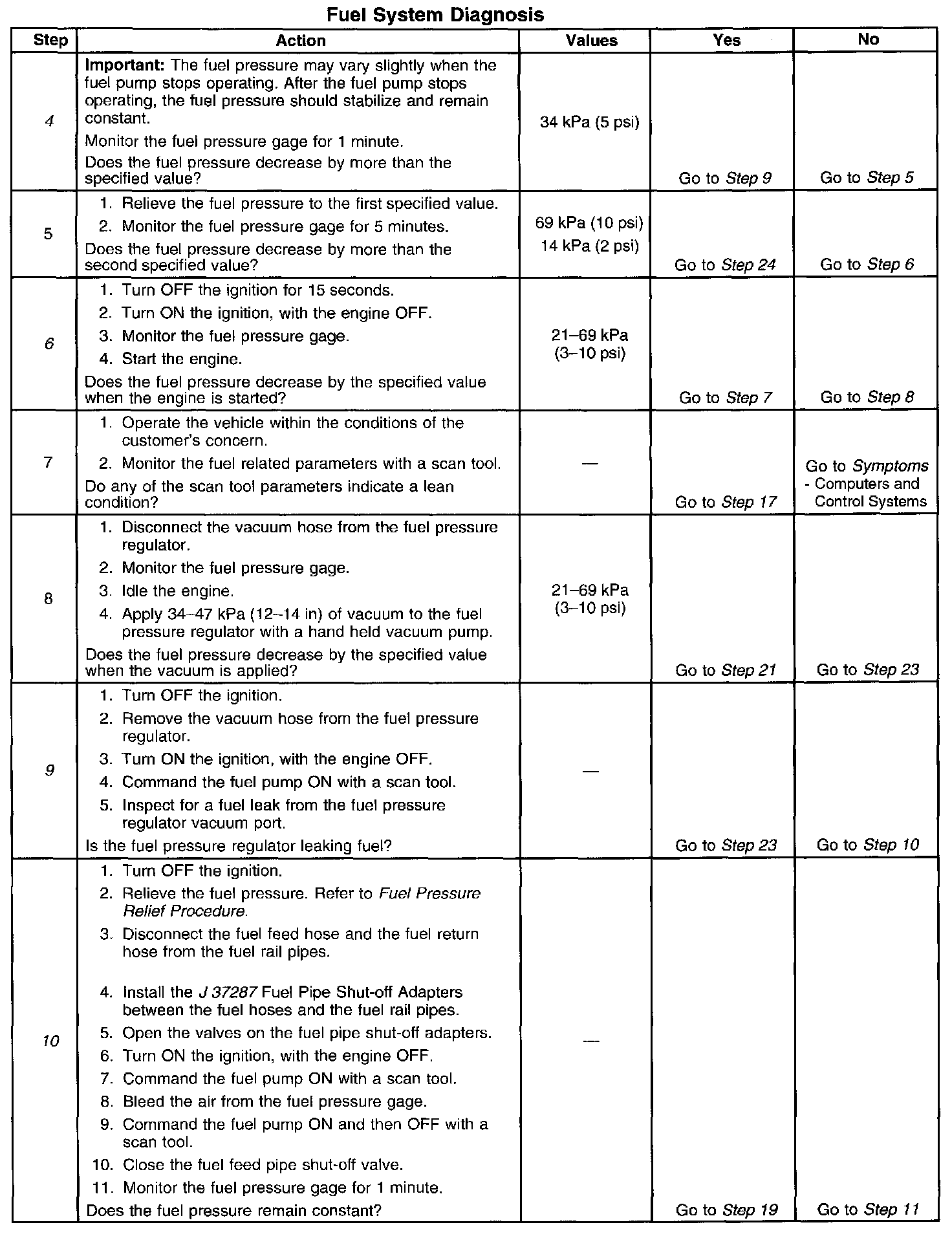 11. This step tests for a leaking fuel injector, or fuel pressure regulator. If the fuel pressure remains constant during this test, the fuel injectors are not leaking fuel.