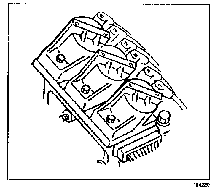 5. Install the spark plug wires (2, 4, 6) to the spark plugs in the proper position at the rear of the engine.