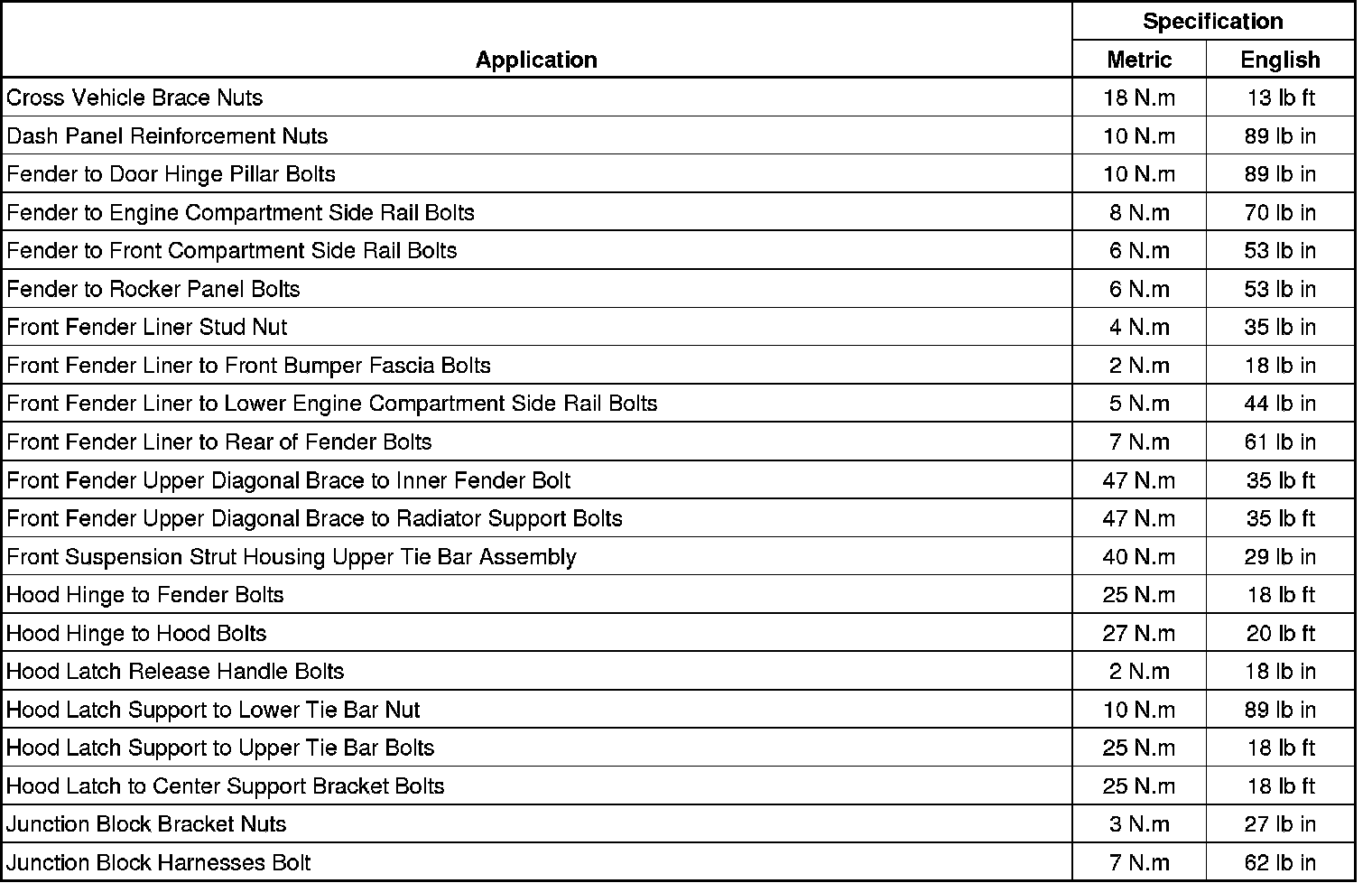 Fastener Tightening Specifications
