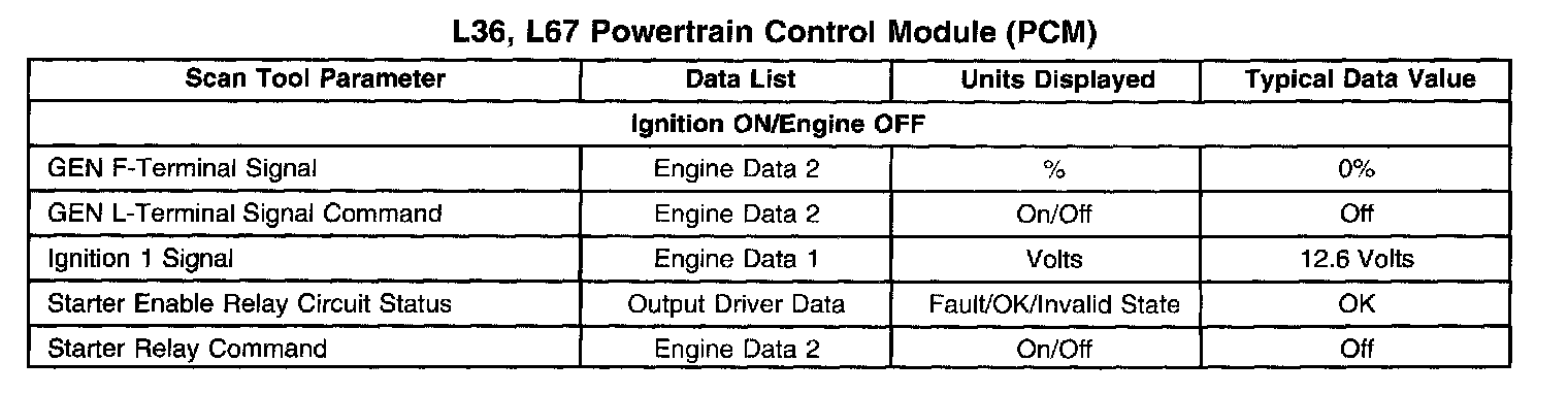 Scan Tool Data List - Powertrain Control Module (PCM)