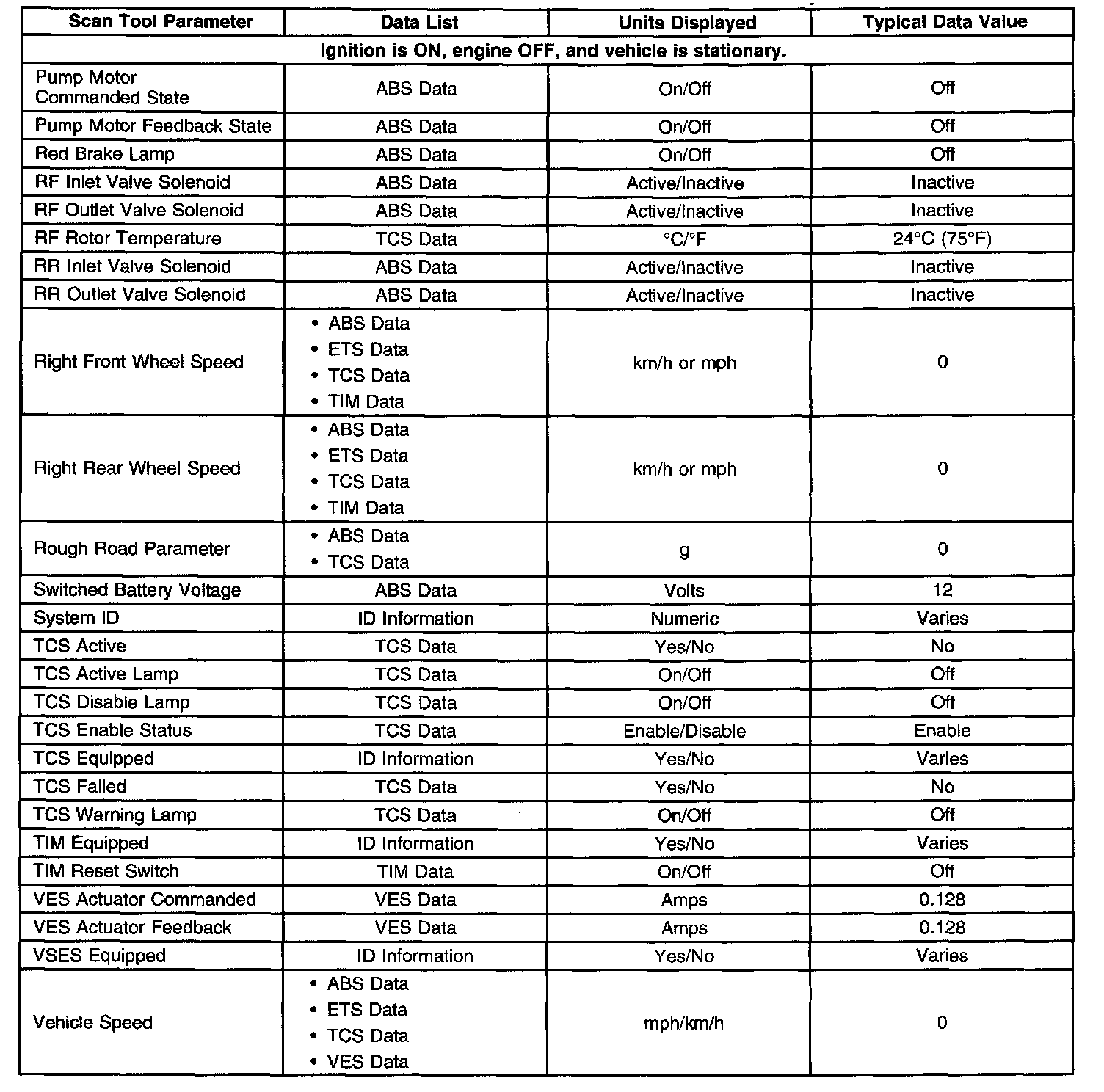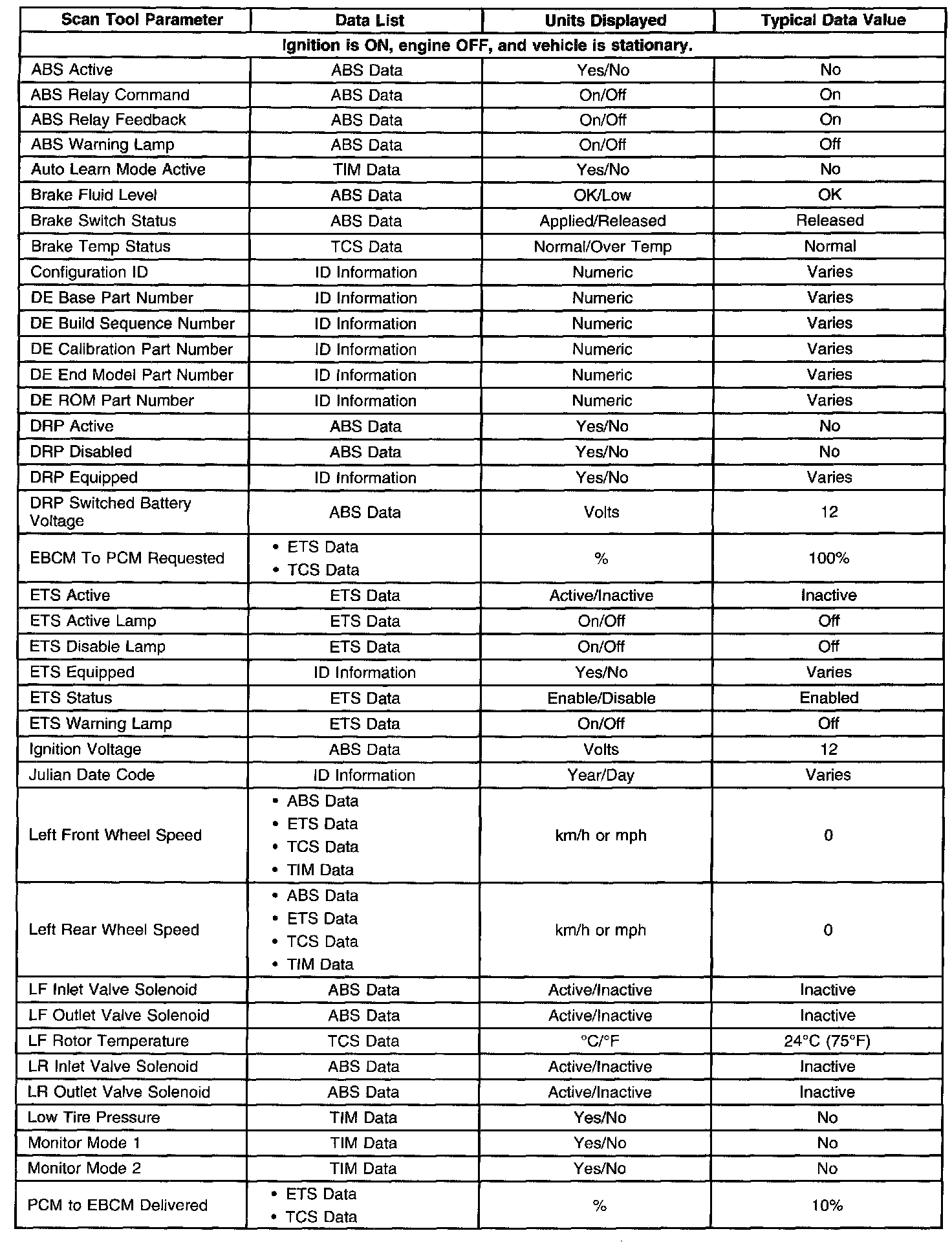 Scan Tool Data List