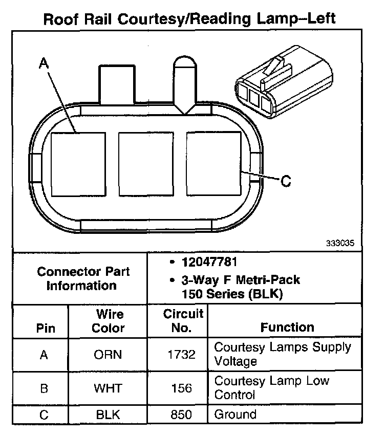 Roof Rail Courtesy/Reading Lamp - Left: