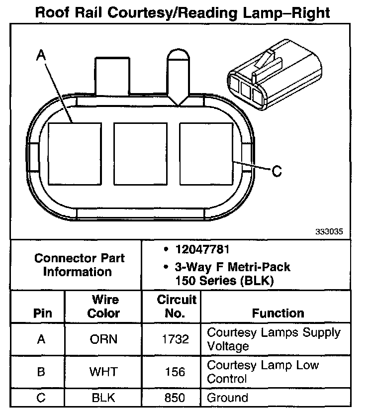 Roof Rail Courtesy/Reading Lamp - Right: