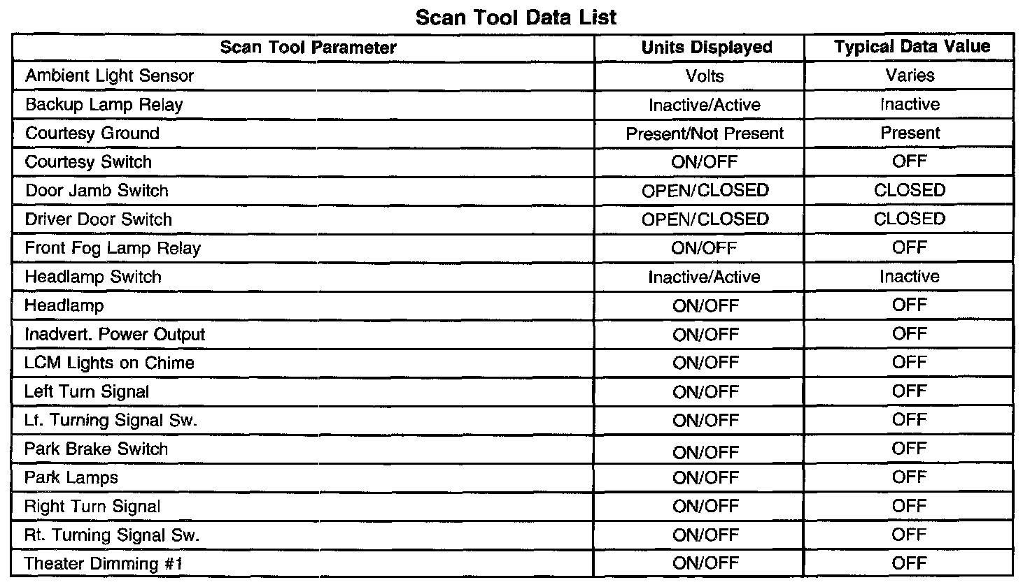 Scan Tool Data List: