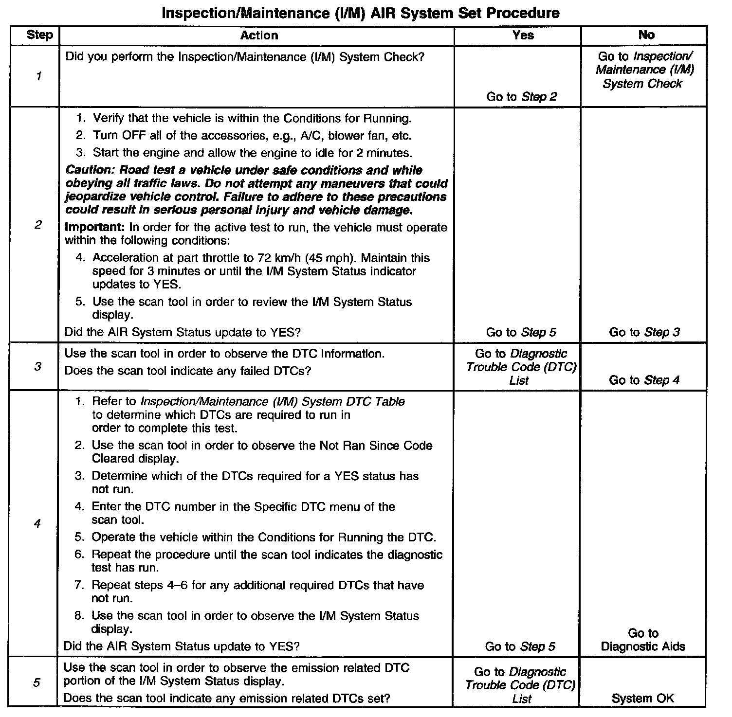 1. Perform the I/M System Check before performing this test. Failure to do so may result in difficulty updating the status to YES. Inspection/Maintenance (I/M) System Check