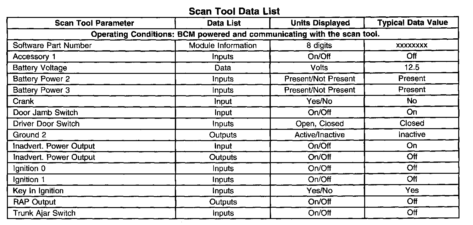 Scan Tool Data List: