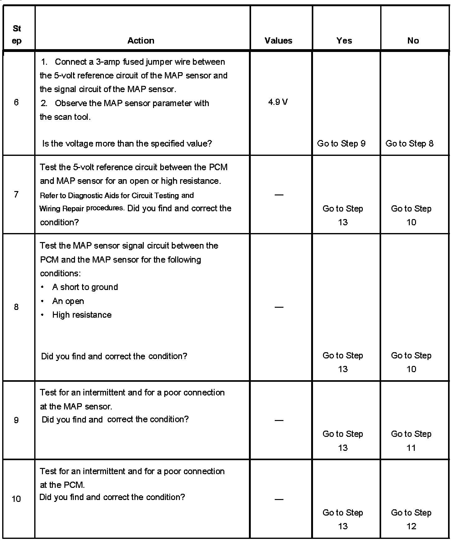 5. This step determines if voltage is available to the sensor. It also determines if there is sufficient current flow in the circuit.