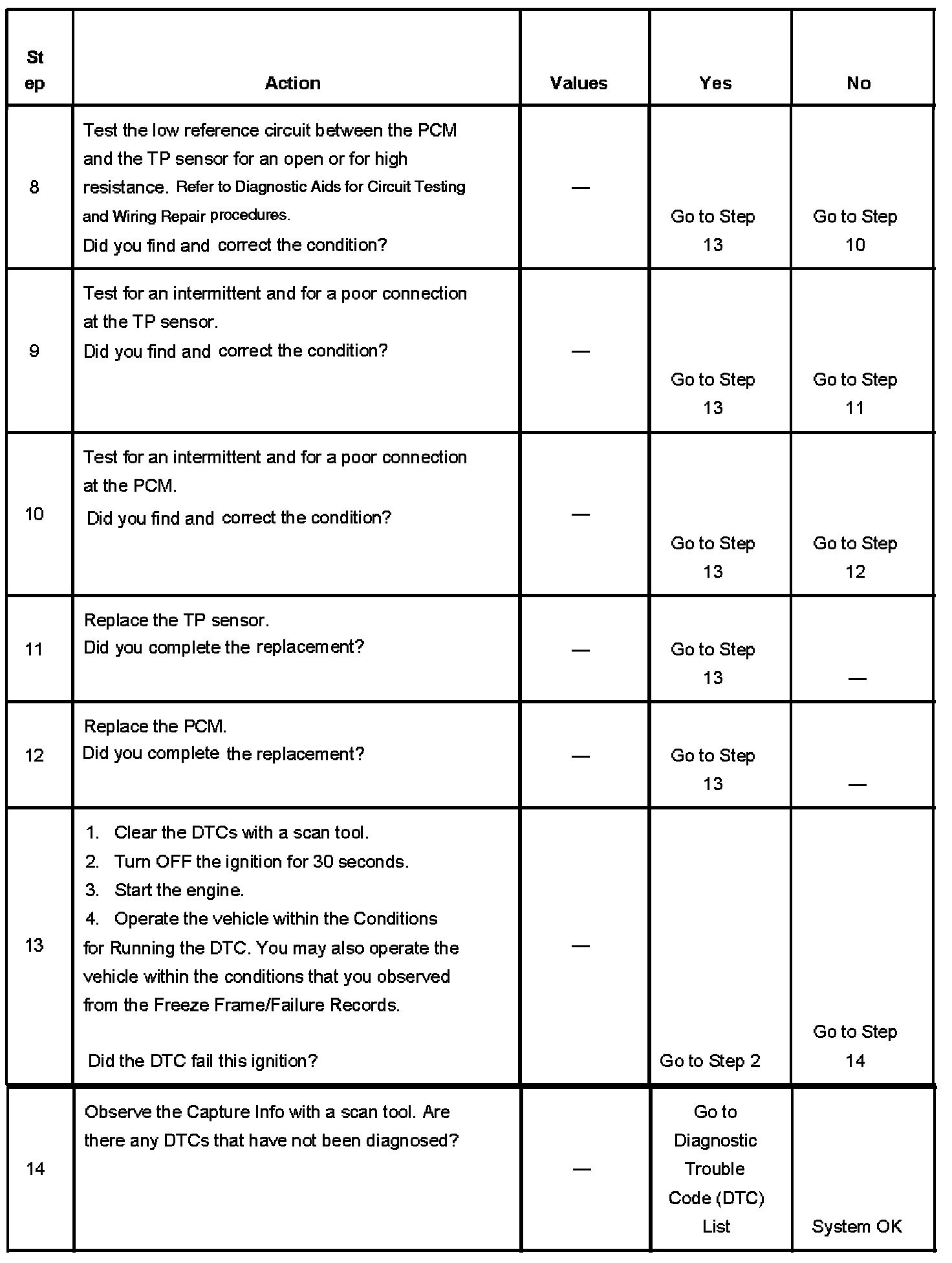 The number below refers to the step number on the diagnostic table.
