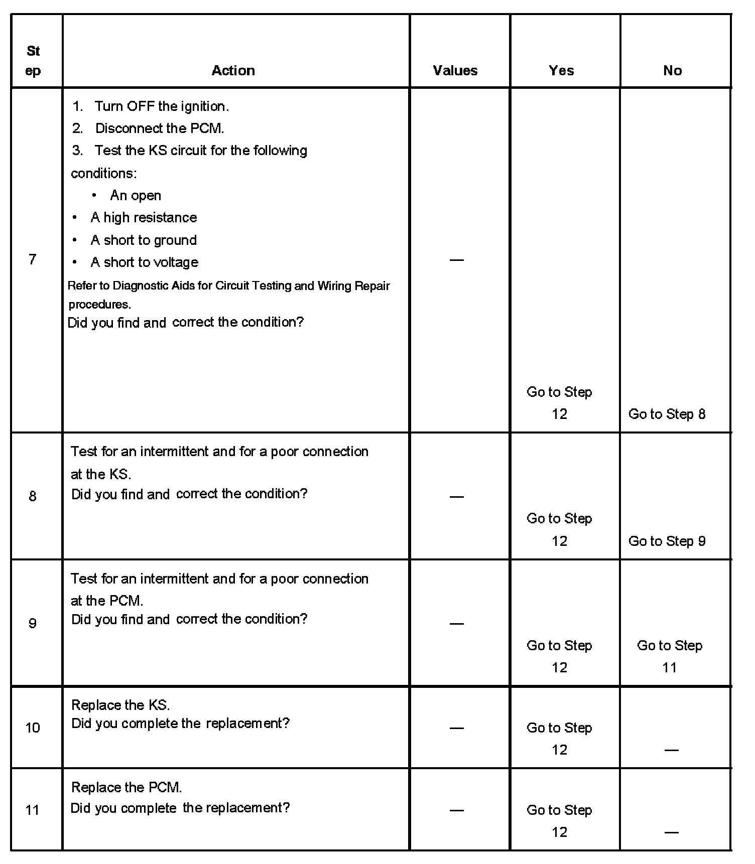 - The PCM detects a malfunction in the KS diagnostic circuitry which will not allow proper diagnosis of the KS circuit.