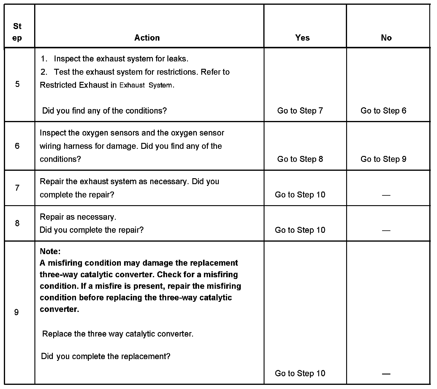 4. This step includes tests for conditions that can cause the 3-way converter to appear degraded. Repair any conditions before proceeding with this table.