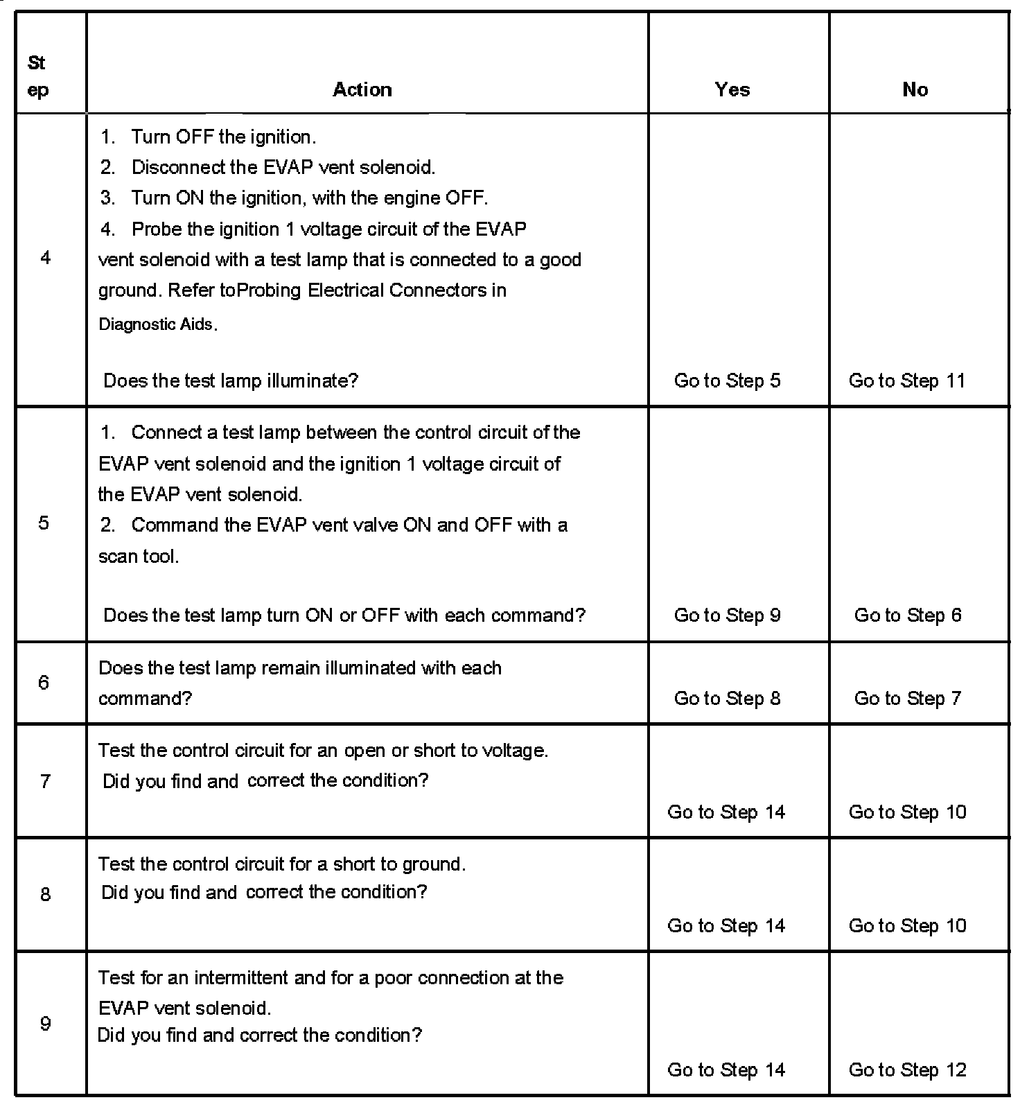 6. This step tests if the EVAP vent solenoid control circuit is grounded.