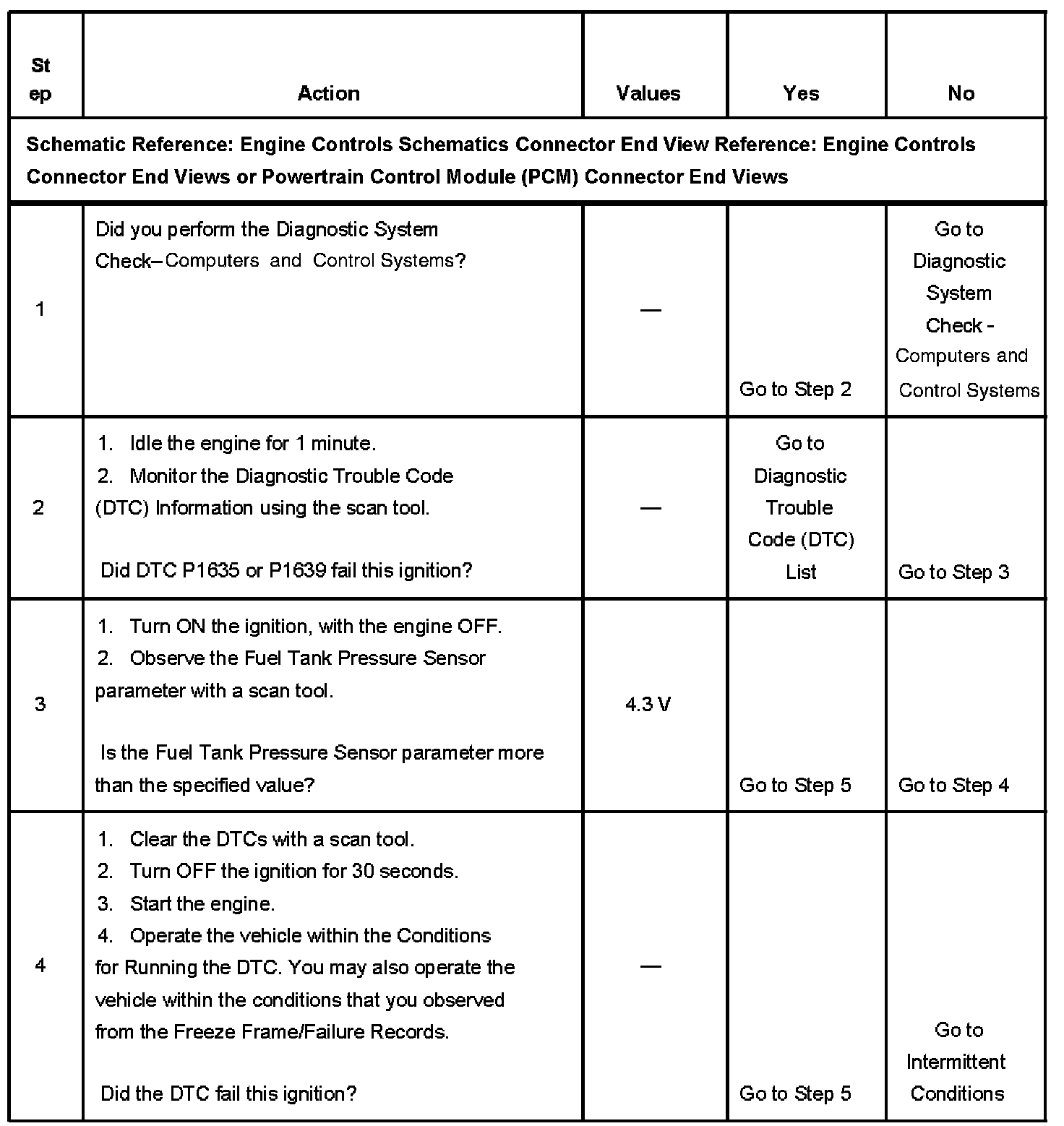 CIRCUIT DESCRIPTIONThe fuel tank pressure (FTP) sensor measures the difference between the air pressure or vacuum in the evaporative emission (EVAP) system, and the outside air pressure. The control module supplies a 5-volt reference and a low reference circuit to the FTP sensor. The FTP sensor signal circuit voltage varies depending on EVAP system pressure or vacuum. If the FTP sensor signal voltage increases above a calibrated value, this DTC sets.