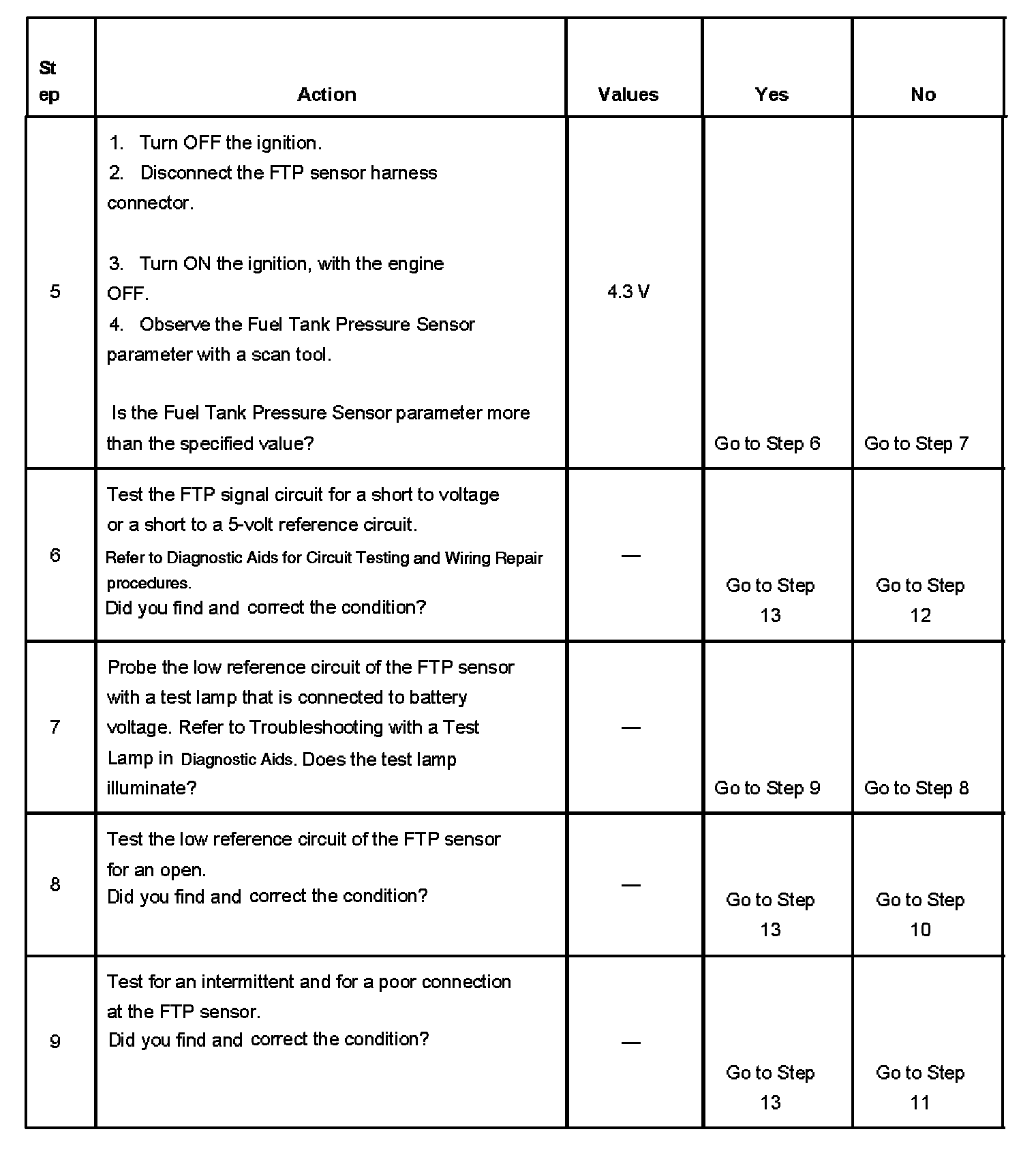 - The FTP sensor voltage is more than 4.9 volts.