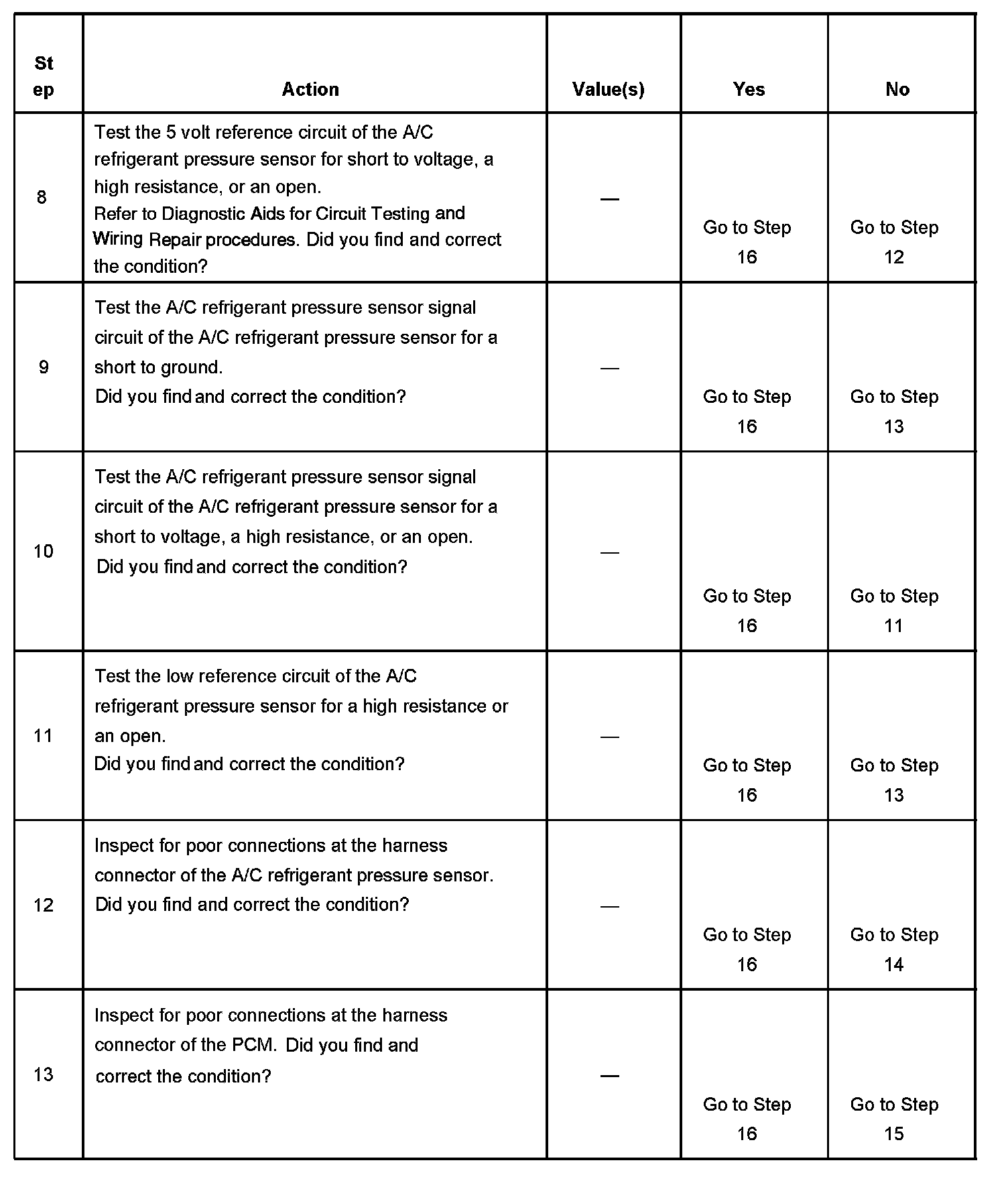 If the condition is not present refer to Diagnostic Aids for circuit testing and wiring repair procedures.