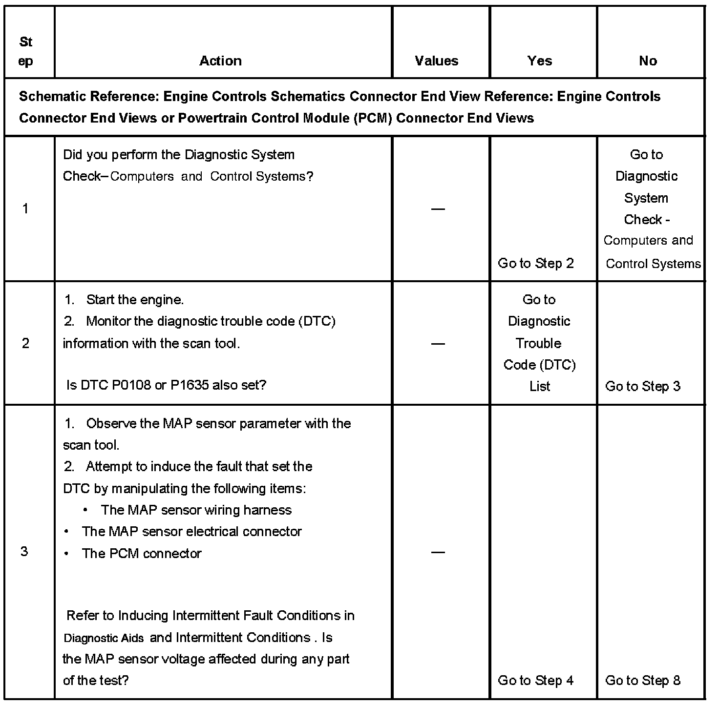 If the PCM detects a MAP sensor signal voltage that is intermittently high, DTC P1106 sets.