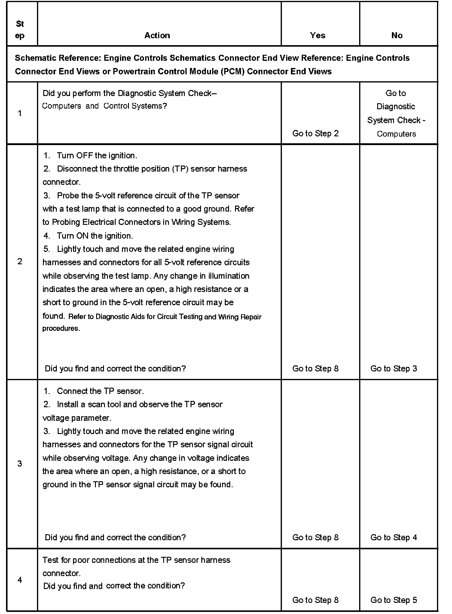 CIRCUIT DESCRIPTIONThe throttle position (TP) sensor is used by the powertrain control module (PCM) to determine the throttle plate angle for various engine management systems. The TP sensor is a potentiometer type sensor with three circuits: