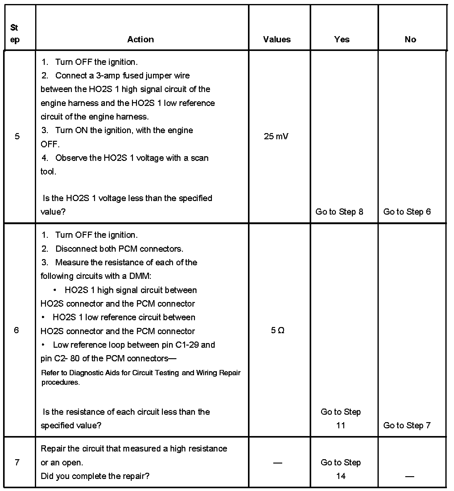 6. This step tests the HO2S 1 signal circuits from the HO2S connector and the PCM connectors, including the low reference loop between the PCM connectors.