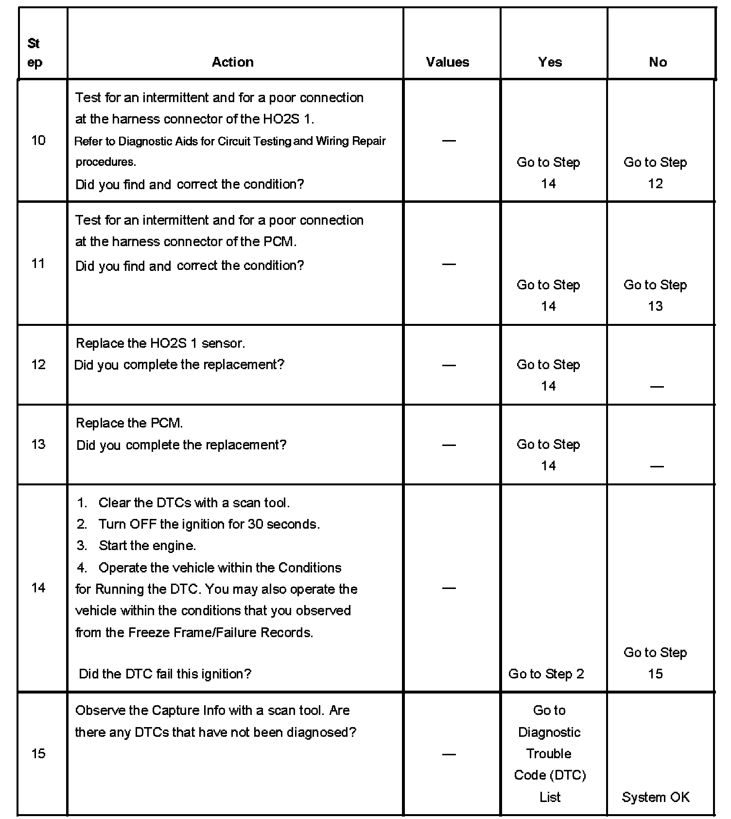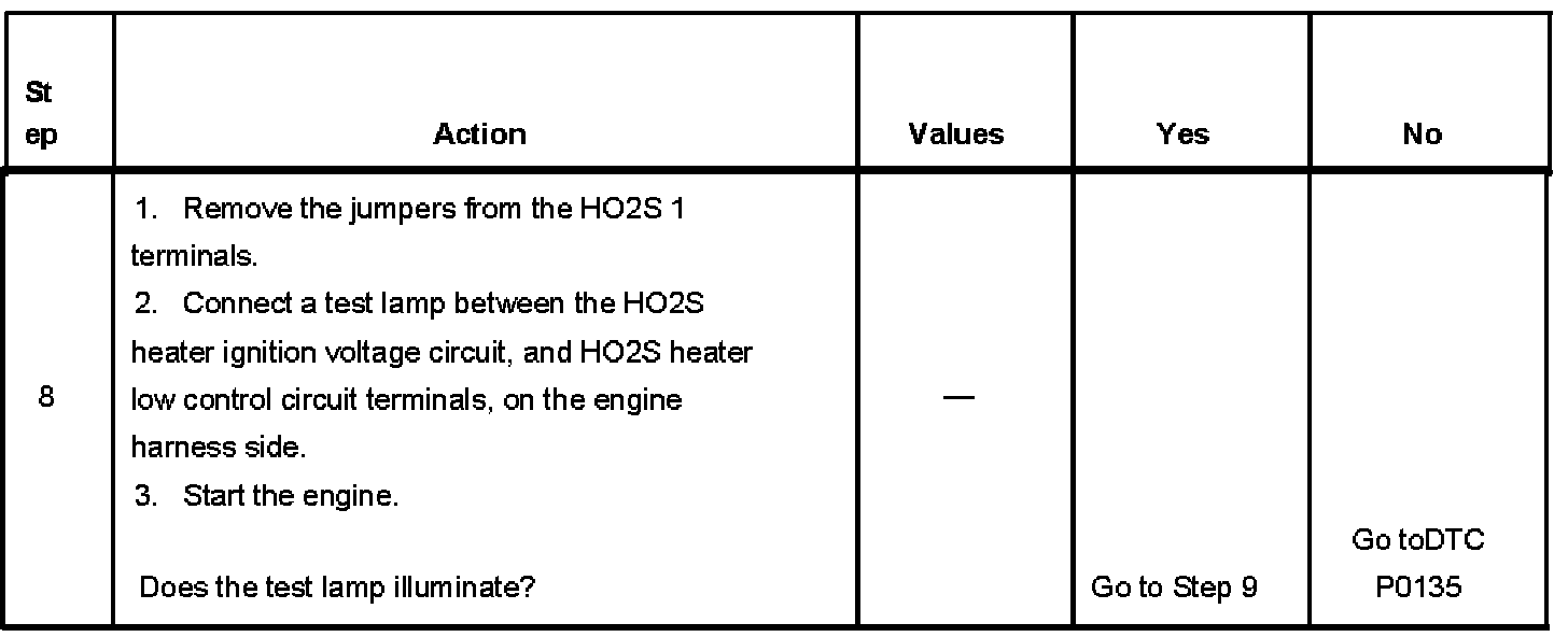 8. This step tests for correct HO2S 1 heater circuit operation up to the HO2S connector. The heater low control is controlled by the PCM. The engine must be running to enable the HO2S heater.